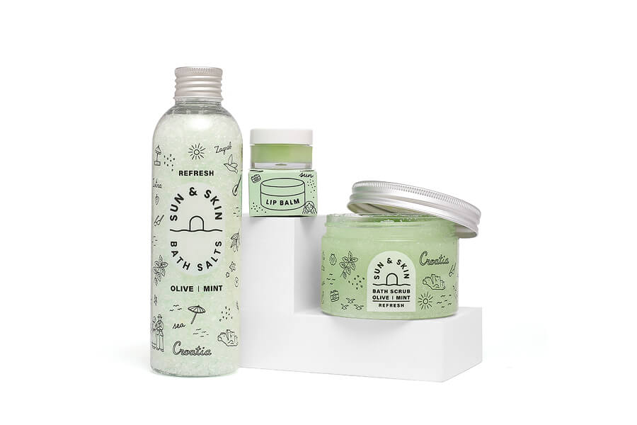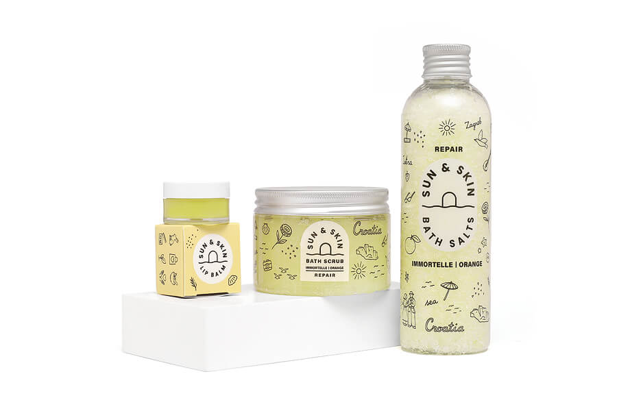 Fotografiranje izdelkov Sun & Skin na belem ozadju.